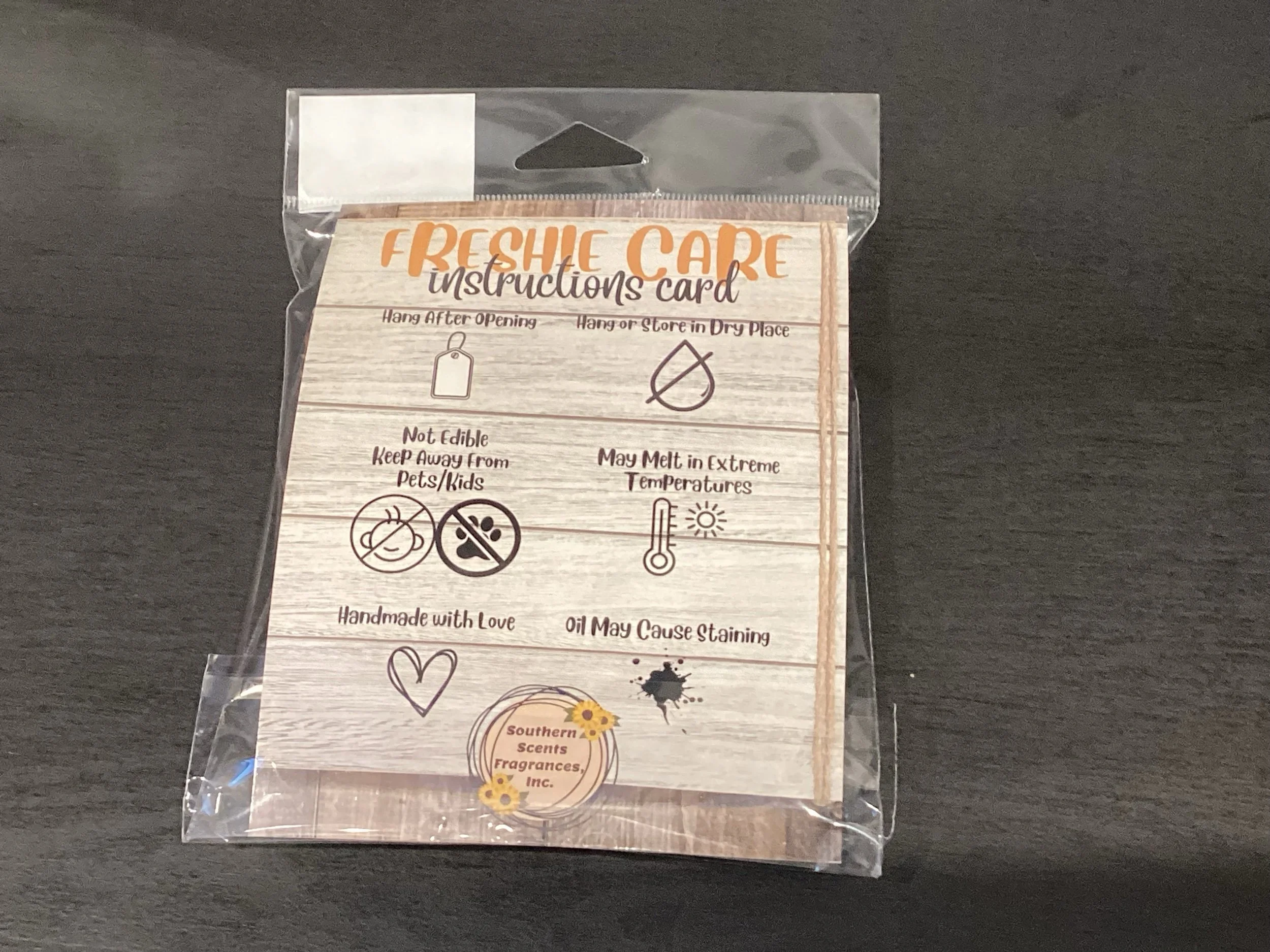 Each freshie is handcrafted in small batches with attention to detail by Southern Scents Fragrances, Inc., in Sebring, Florida.
