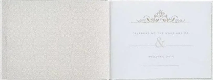This Wedding Guest book is a beautiful white pearlized faux leather with lace design Mr. & Mrs. Guest book, white satin ribbon marker, 160 lined pages, and 6.4” height and 8.5” width. On the back cover, it reads “Love one another deeply, from the heart.”